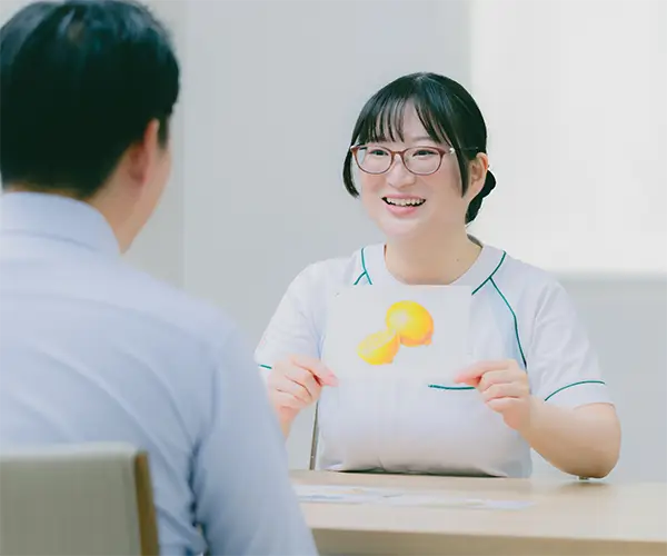 理学療法士・作業療法士・言語聴覚士は、チーム医療の一員として、患者さまが安心して日常生活に戻れるよう支援する重要な役割を担っています。身体機能の回復、日常生活動作の獲得、移動手段の確立、そして退院・在宅・職場復帰などを目指して、個別に評価・治療・再評価を行いながら、一人ひとりに合った目標設定のもとリハビリテーションを実施します。関節の動きや筋力・麻痺の改善、歩行練習や生活動作の練習に加え、各種装具や補助具の検討、言語障害や嚥下障害、聴覚障害などに対するトレーニングや食支援も行います。多職種と連携しチーム全体で患者さまの「その人らしい生活」の実現を目指し、家屋の環境整備や退院支援を行うのも特徴です。