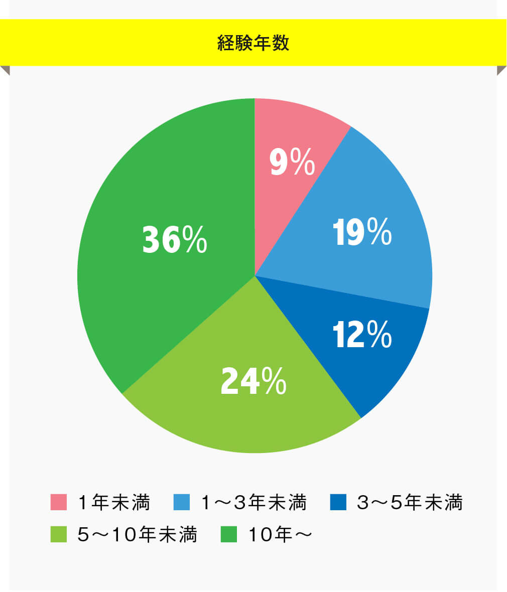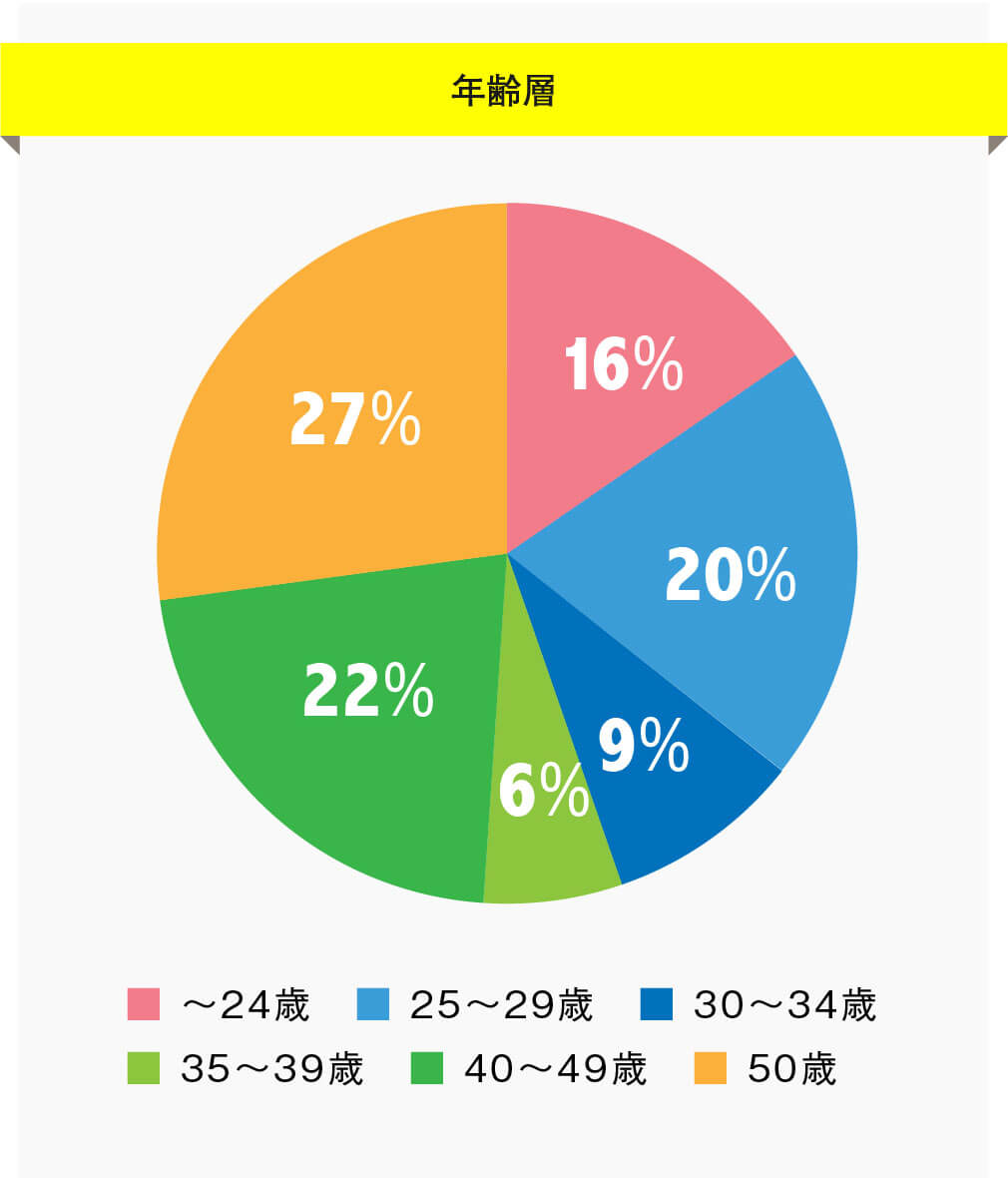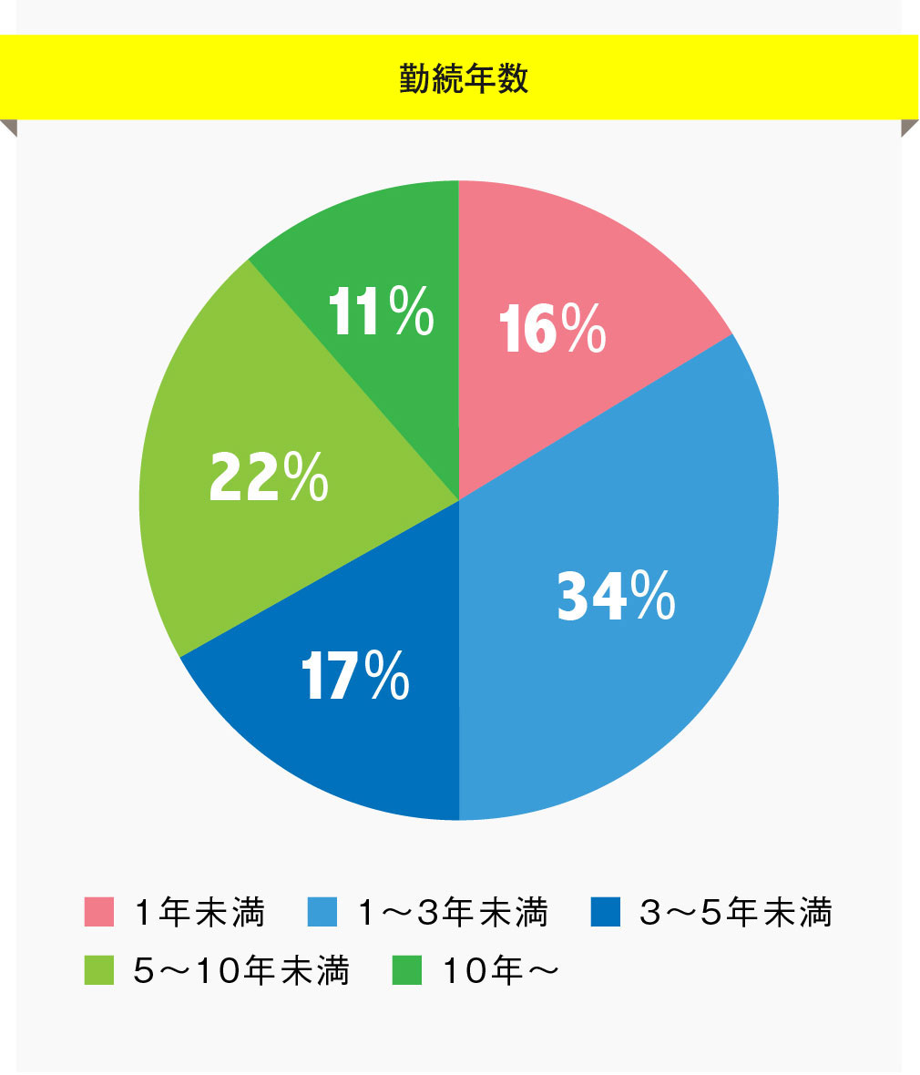 20代〜50代以上の方まで幅広い年齢の職員が活躍しています。ベテラン職員も多いので、若い職員も安心して働ける職場になっています。