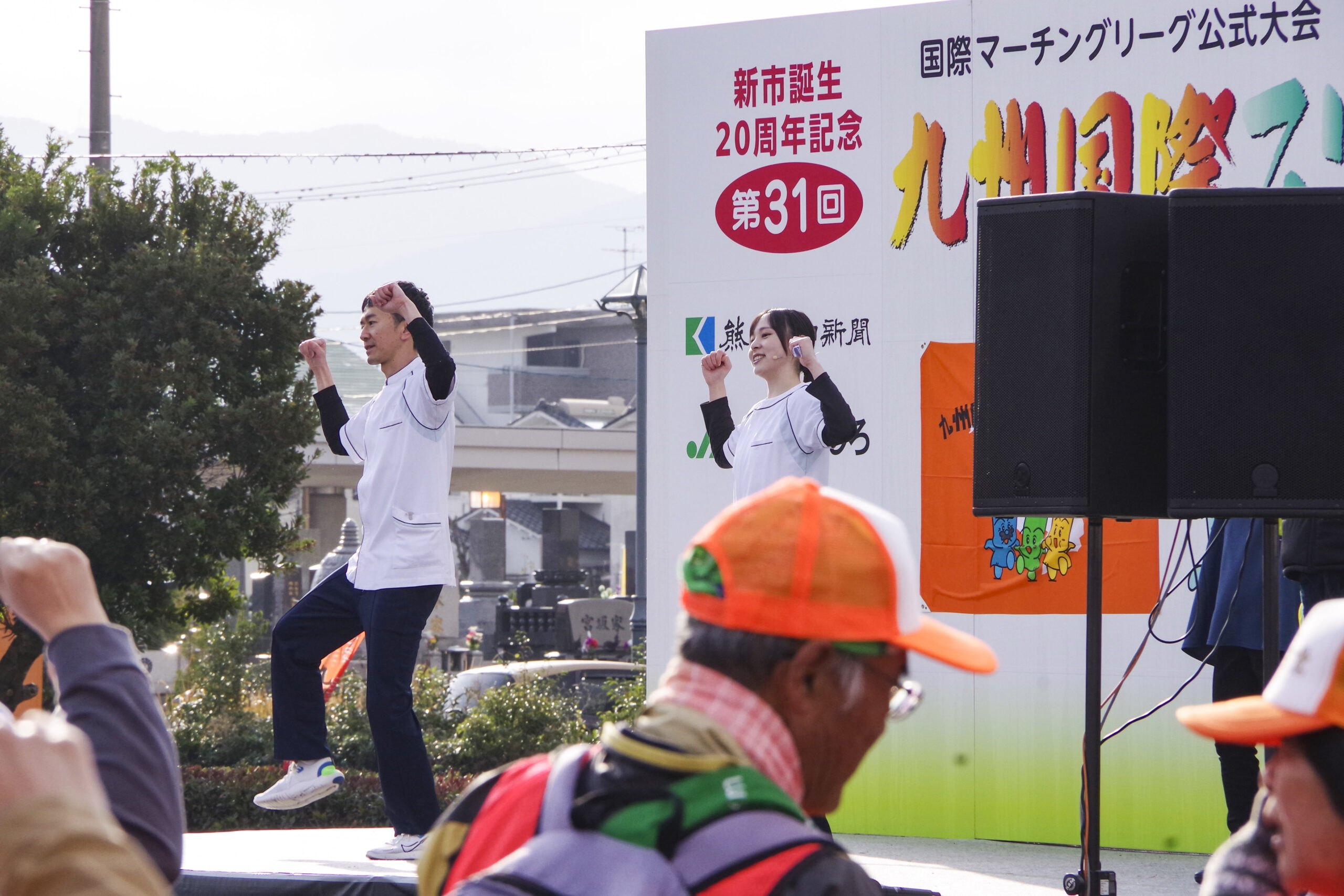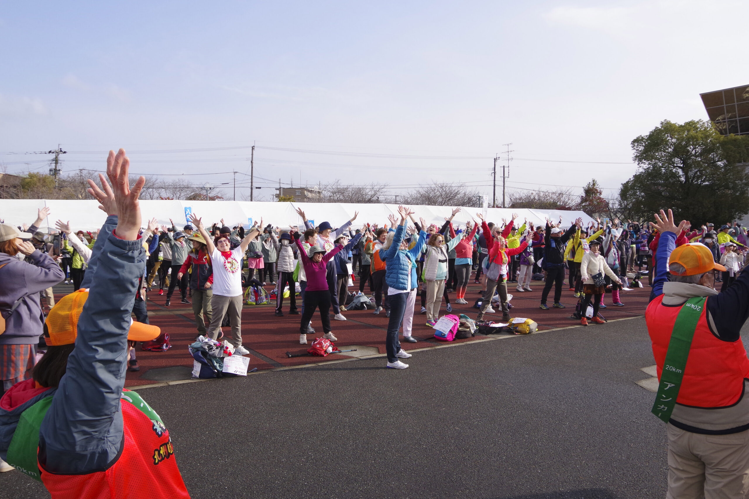 大会では、当院の理学療法士が各コースの出発式における準備体操を担当しました。
