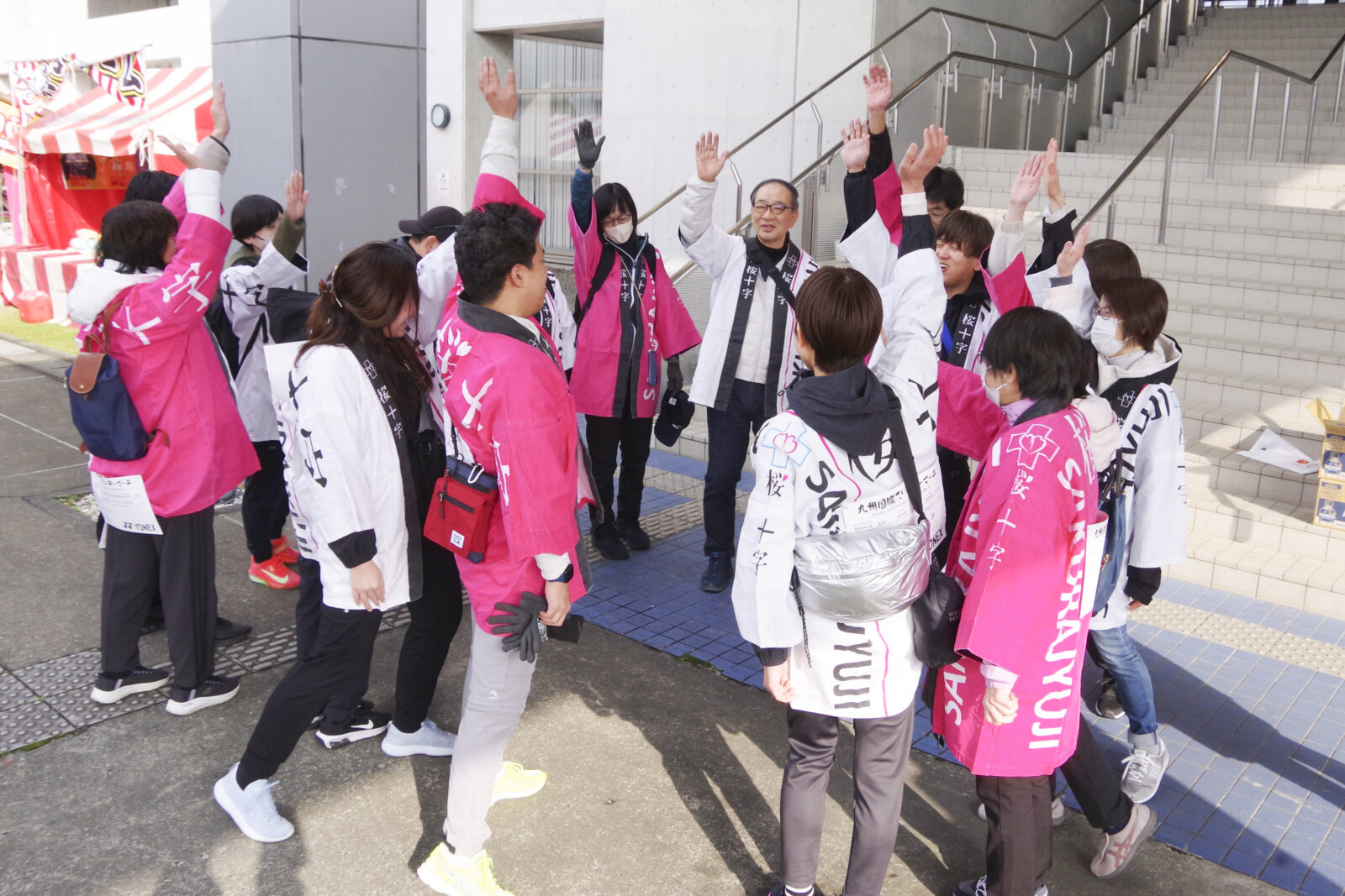 当院が出発式の体操を担当するのは今回が初めて。3日間・全11コースの出発式で体操を行いました。