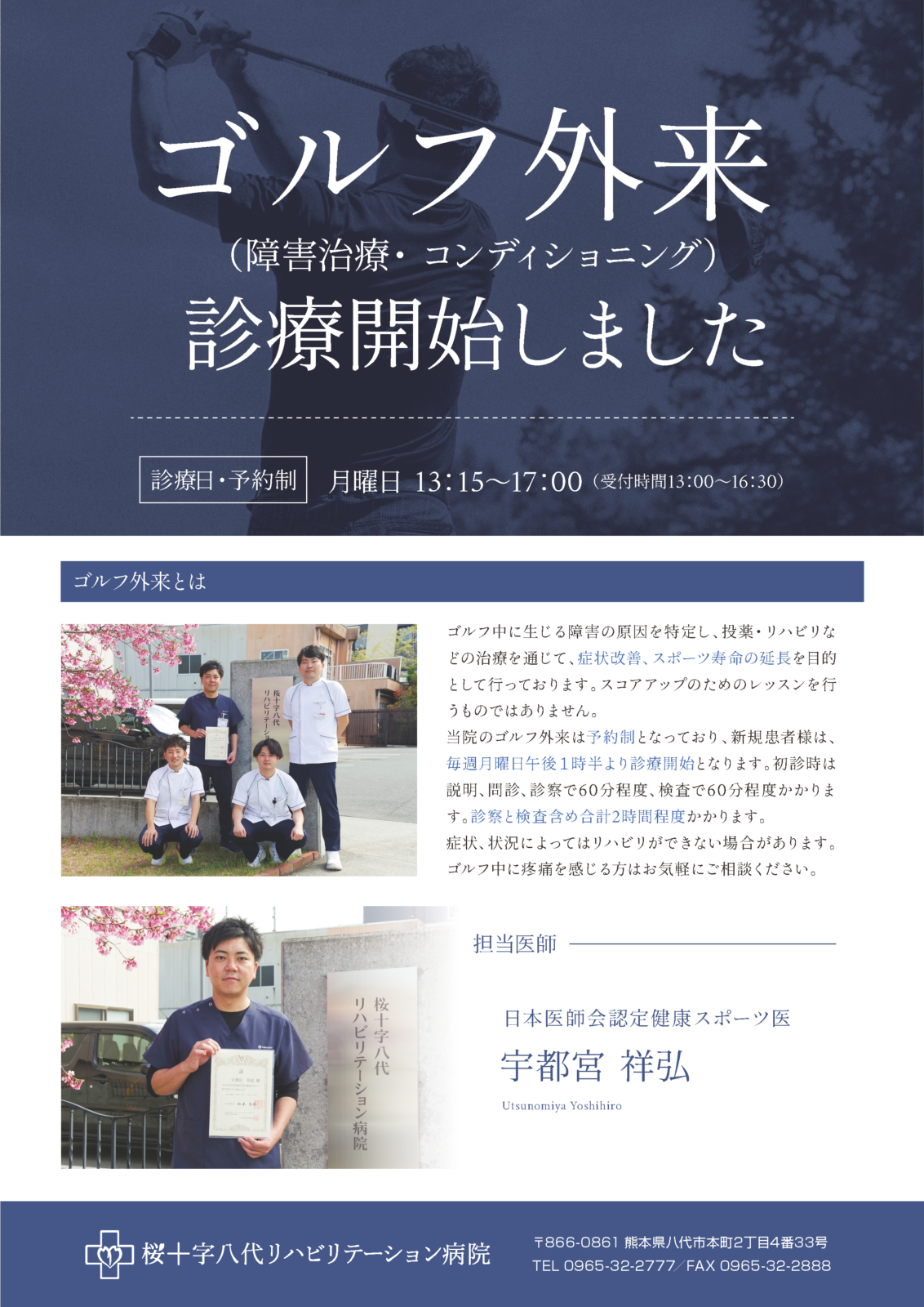 4月より、ゴルフ外来(障害治療・コンディショニング)の専門外来診療が開始いたしました。